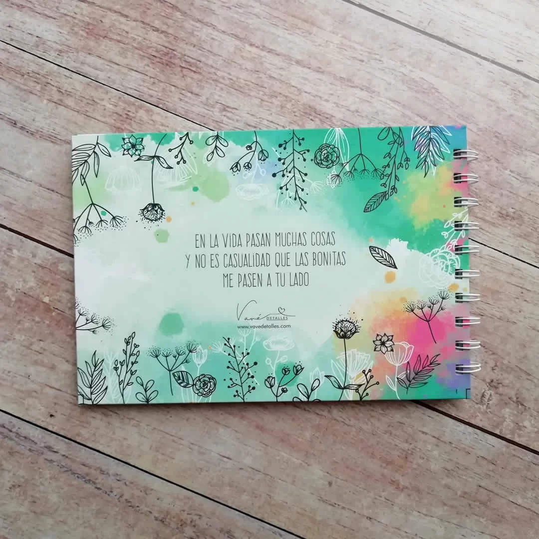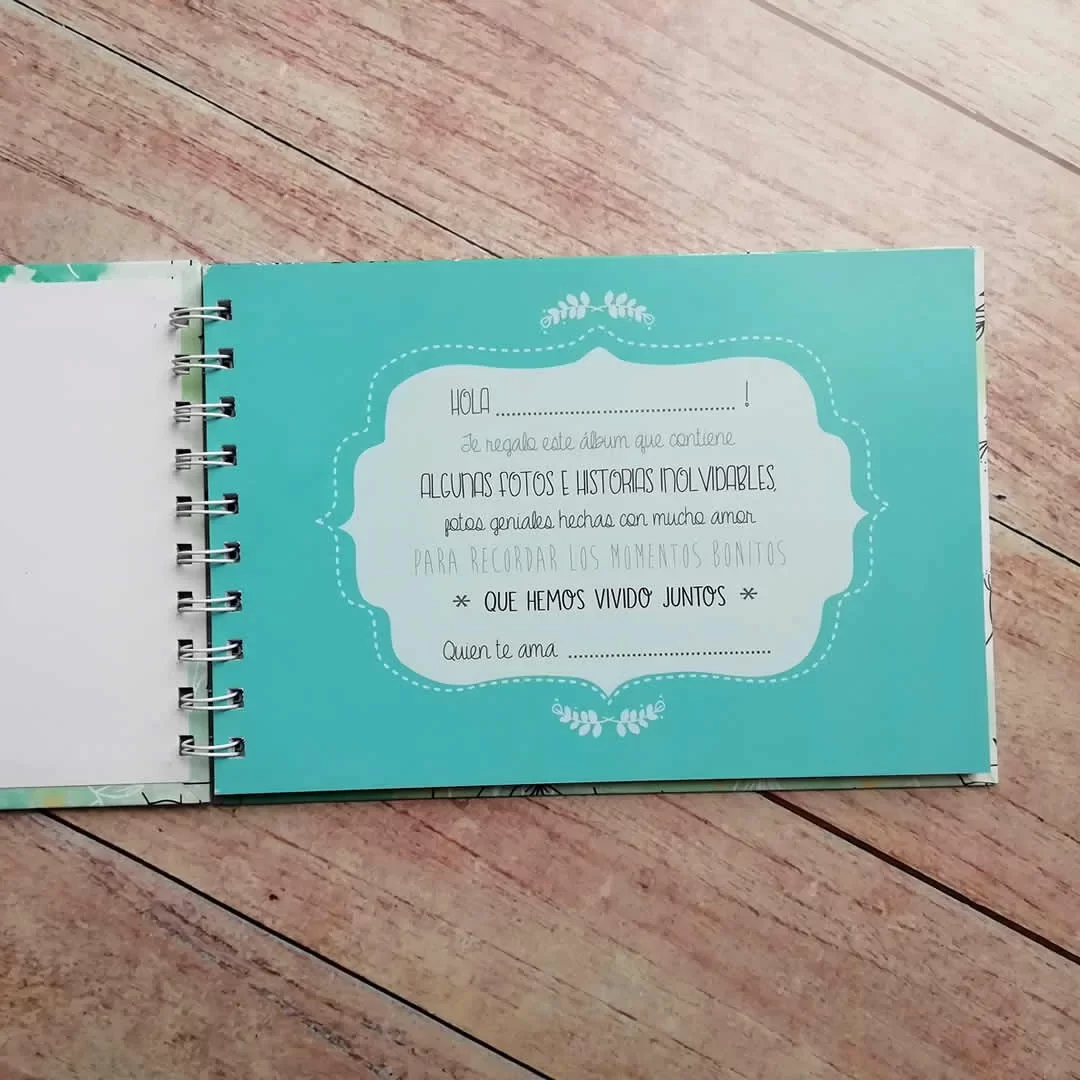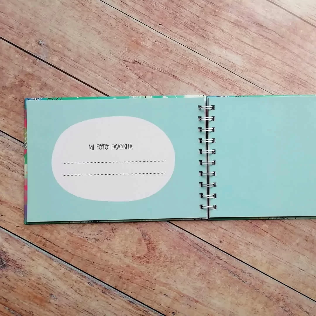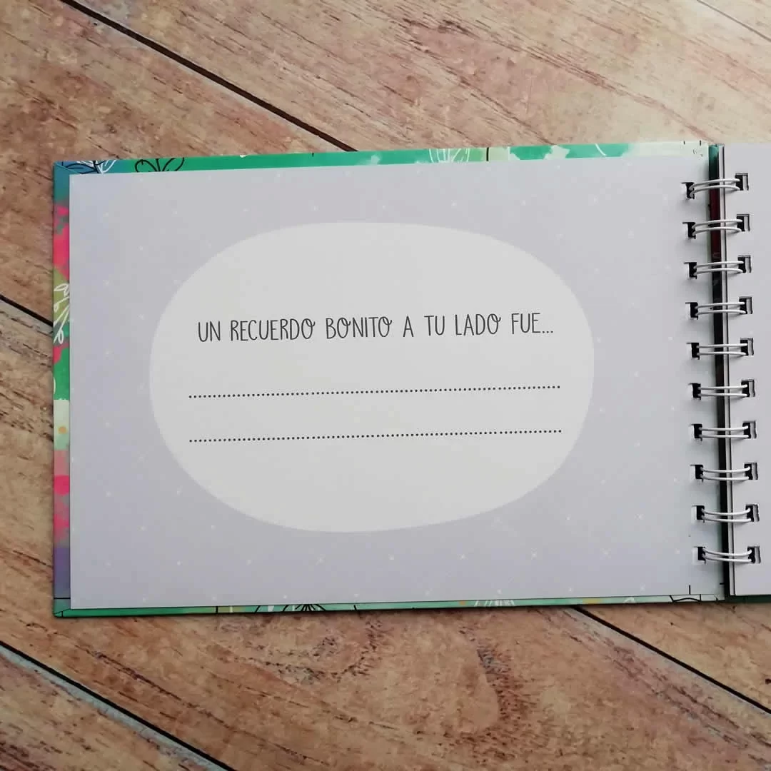 Cuenta con 21 hojas ( 42 páginas) y puedes pegar hasta 20 fotos, pero eso no es todo, también puedes comentar o agregar mensajes por cada foto para que quede mucho más personalizado. Adicional, recibirás 32 tiras de colores y 30 mensajes para pegar tus fotos y darles un toque de originalidad.